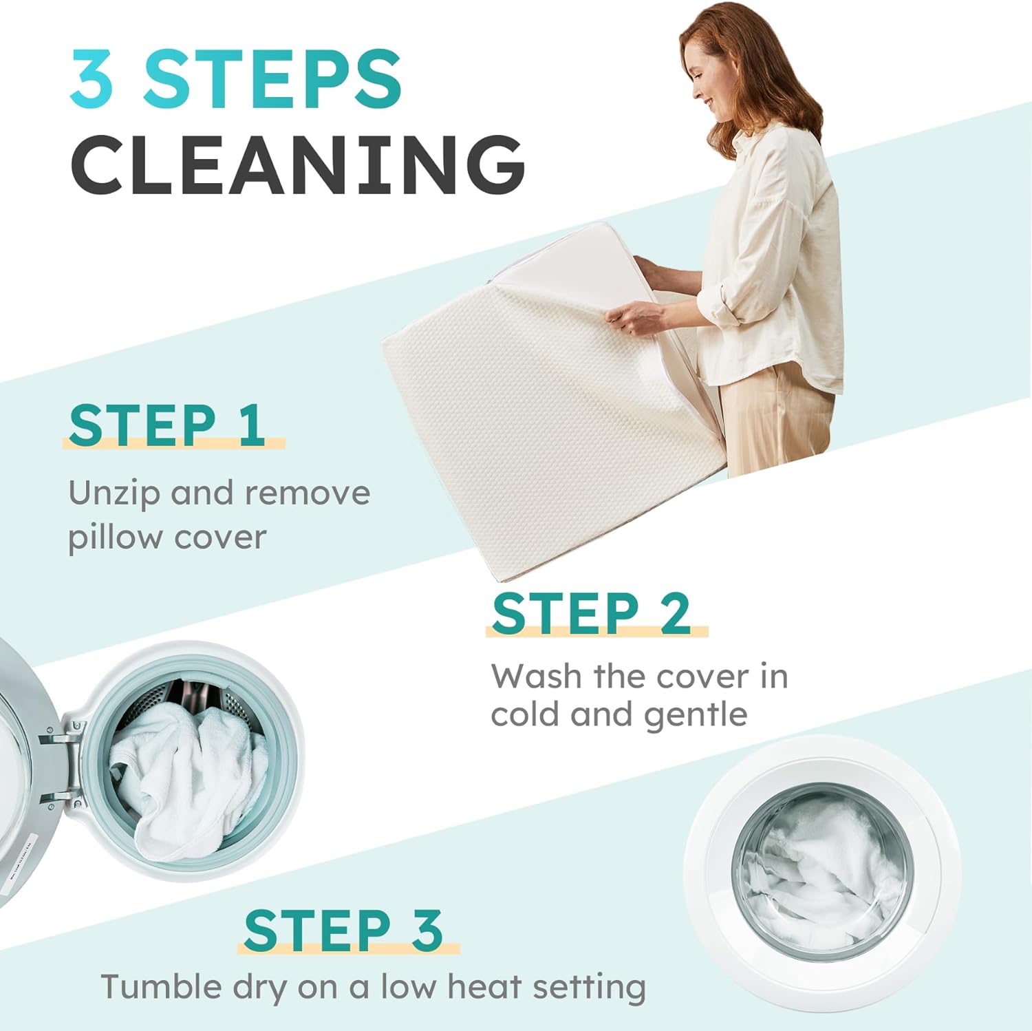Oreiller de soutien incliné pour soulager les douleurs dorsales – Mousse à mémoire de forme infusée de gel rafraîchissant, housse amovible et poches de rangement intégrées | Premium Comfort Cushion UK